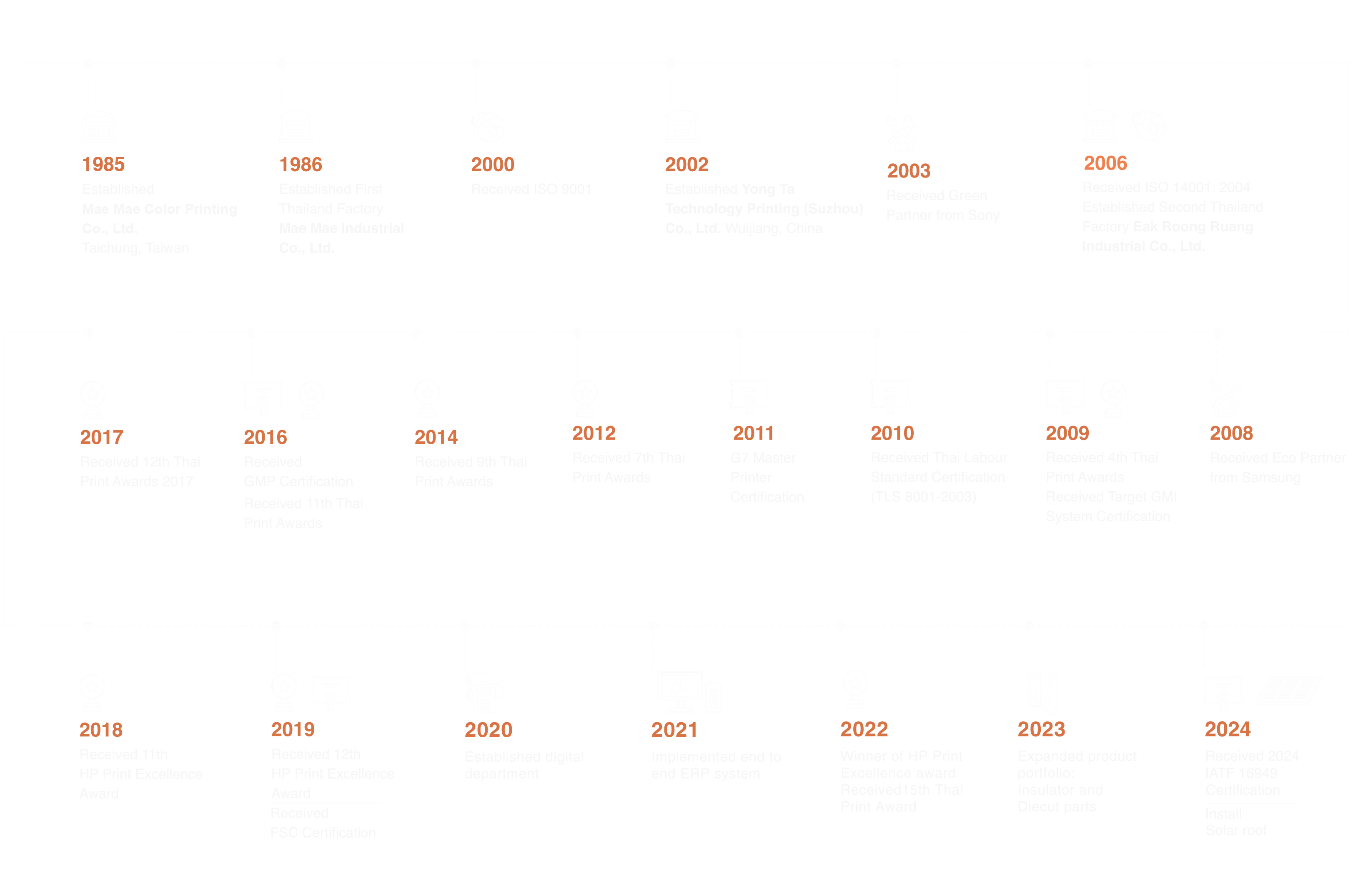 At Mae Mae Industrial, our history is steeped in a passion for print. It all began in a humble print shop in a small town of Taichung City, where our founders, expert in the field, had a vision to provide exceptional printing services to businesses and individuals alike. With meticulous attention to detail and unwavering commitment to quality, we steadily grew and expanded our production base to Thailand.